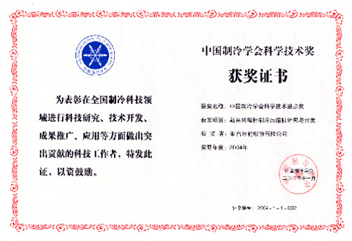 2005年1月,冰輪“新系列螺桿制冷壓縮機(jī)研究與開發(fā)”榮獲中國(guó)制冷學(xué)會(huì)科技進(jìn)步一等獎(jiǎng)。