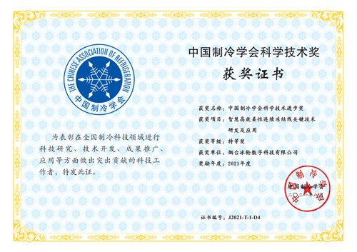 “NH3/CO2螺桿復(fù)疊制冷系統(tǒng)關(guān)鍵技術(shù)研究與系統(tǒng)開發(fā)應(yīng)用”獲山東省科技進(jìn)步一等獎(jiǎng)和中國(guó)制冷學(xué)會(huì)科技進(jìn)步特等獎(jiǎng)。
